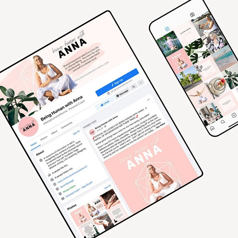 Anna is a life coach. Since she herself is the brand she wanted a brand that embodied her own aesthetic. The style is a mixture of organic elements and modern graphics.